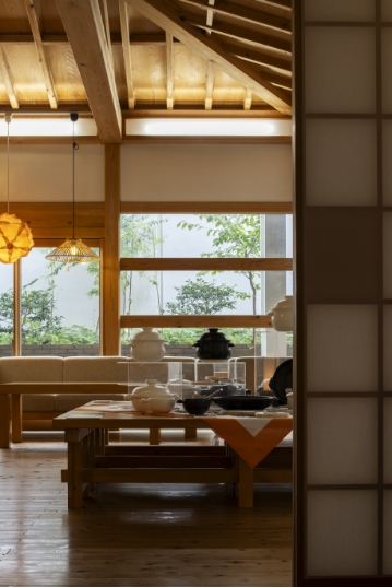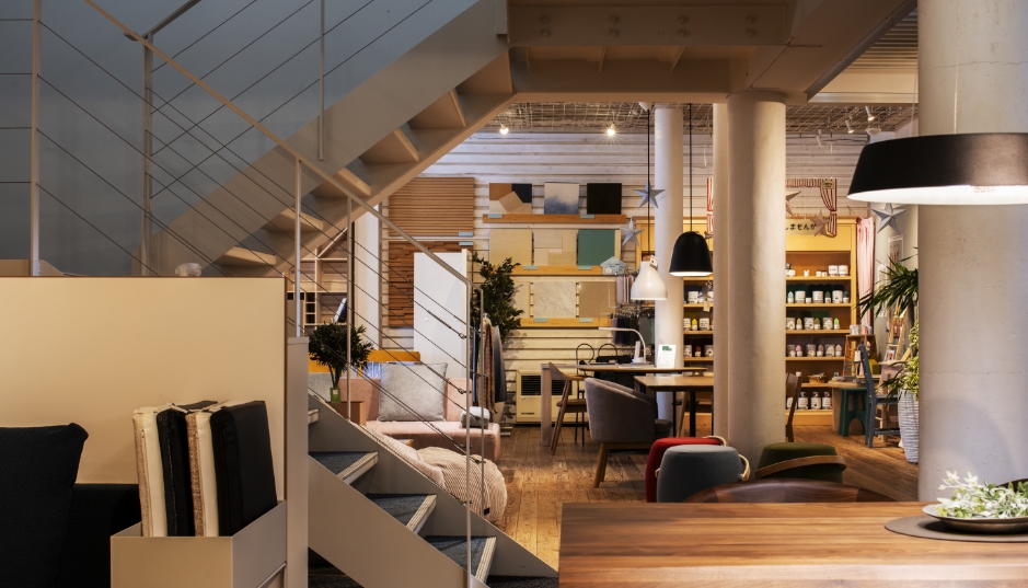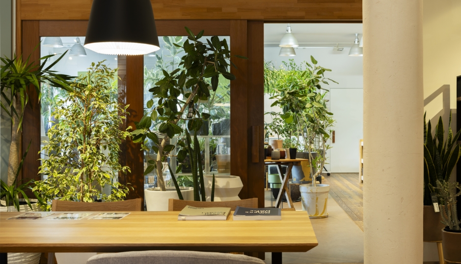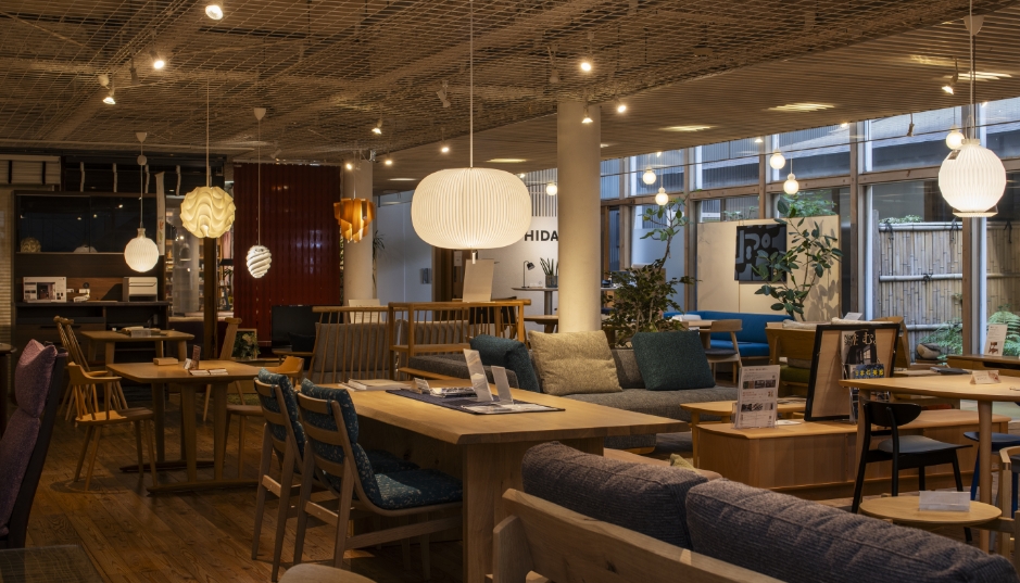 訪れた人が実際に触れることができるセレクトショップ『ラボットリビングスタイル』。国内外から集めた人気のインテリアや、センスの良い雑貨が揃っています。店舗の中央に立つのは、建築家・広瀬鎌ニ氏設計の「肆木の家2」。耐用年数200年を目指し、釘金物を使わずに多様な木造構法を自在かつ的確に組み合せた、職人技の光る建物です。「過去の叡智を受け継ぐだけではなく研鑽を重ねた上で未来へ渡す」という「暮らし」と「ものづくり」への思いが込められています。わたしたちは、このような拠点運営においても循環型社会の実現に向けた活動を、磨き、深め、広めるように取り組んでいます。