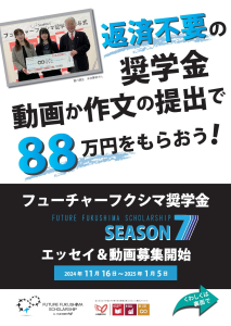 SEASON7 フューチャーフクシマ奨学金 募集開始 応募期間(2024年11月16日から2025年1月5日)