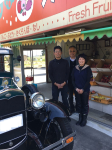 「長雨で桃は影響があったけど、リンゴは台風の被害も無くて良い出来ですよ!」絵にかいたような働き者です。息子さんもやってきてA型フォードがお気に入りの様子。