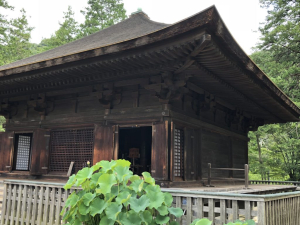 平安時代1160年に建立された方三間単層宝形造・柿葺。深い森を背負い浄土庭園に囲まれた中に、深い精神性を湛えながら訪れる人を迎えます。震災で被災したものの収蔵の仏像を含めて見事によみがえった。