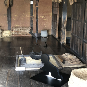 板張りの床、高い天井、粗末な土壁、厳冬期の暮らしが偲ばれます。