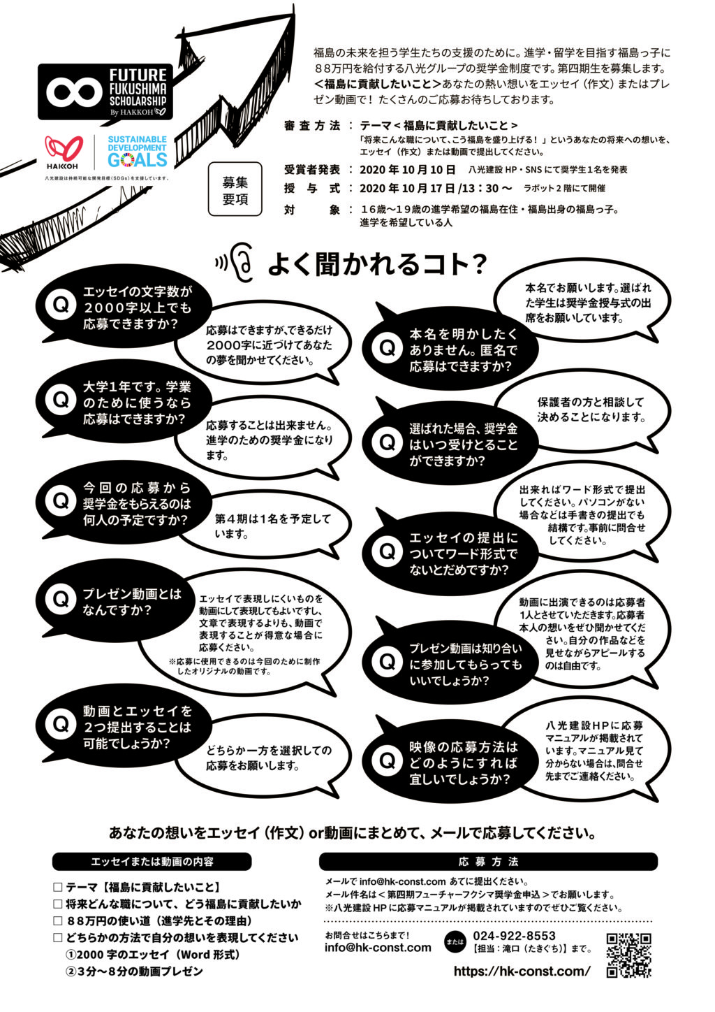 福島県に由来のある方で16歳から19歳までの進学希望の方!応募お待ちしています!
