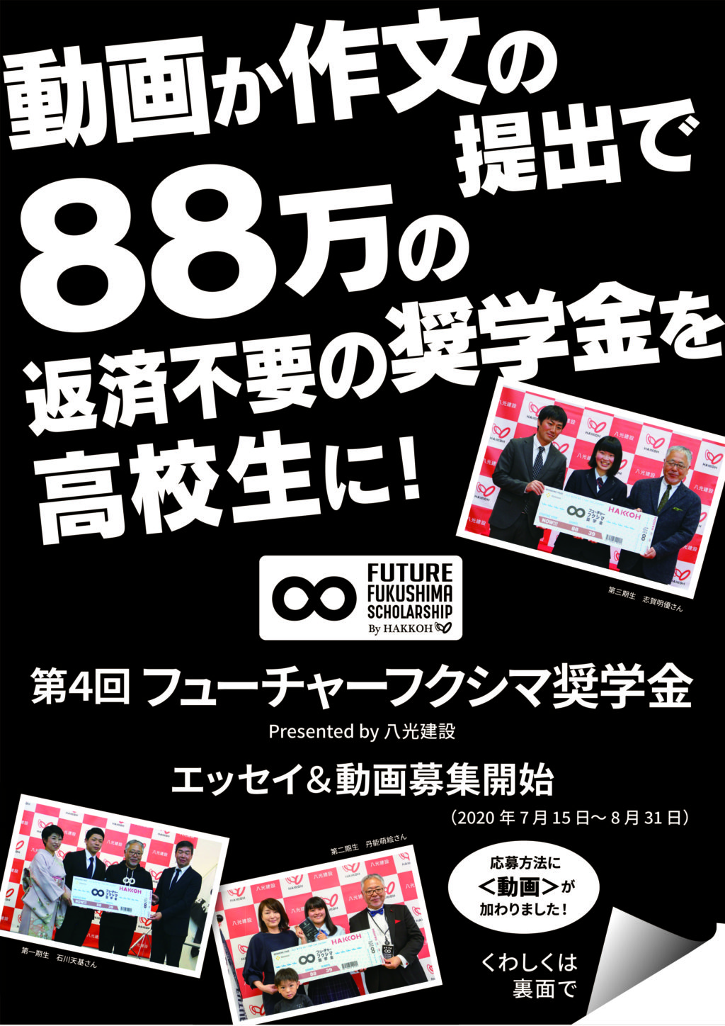 福島の未来を担う高校生世代の支援のために、88万円を給付する八光グループの奨学金制度です。